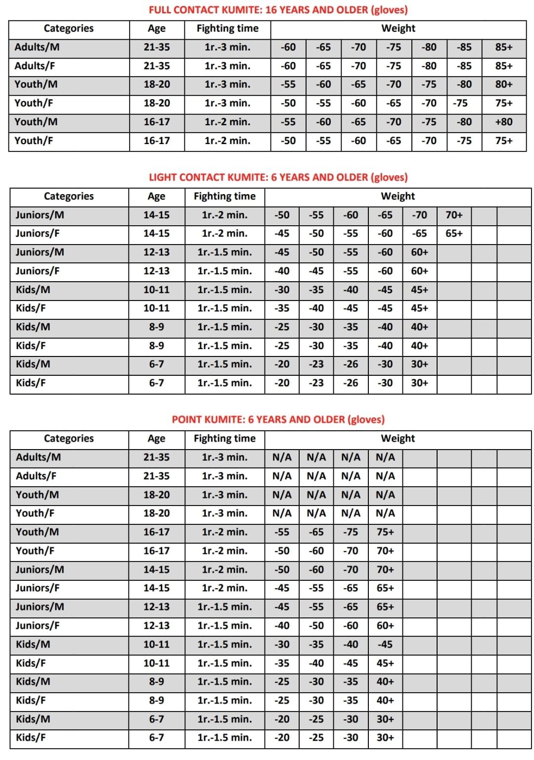 The tournament organizers reserve the right to change weight categories depending on the number of participants in weight and age categories